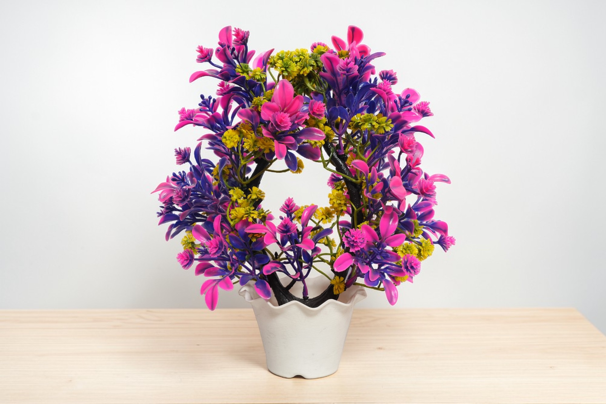 Artificial Multicolor Bonsai Plant with White Lotus Pot