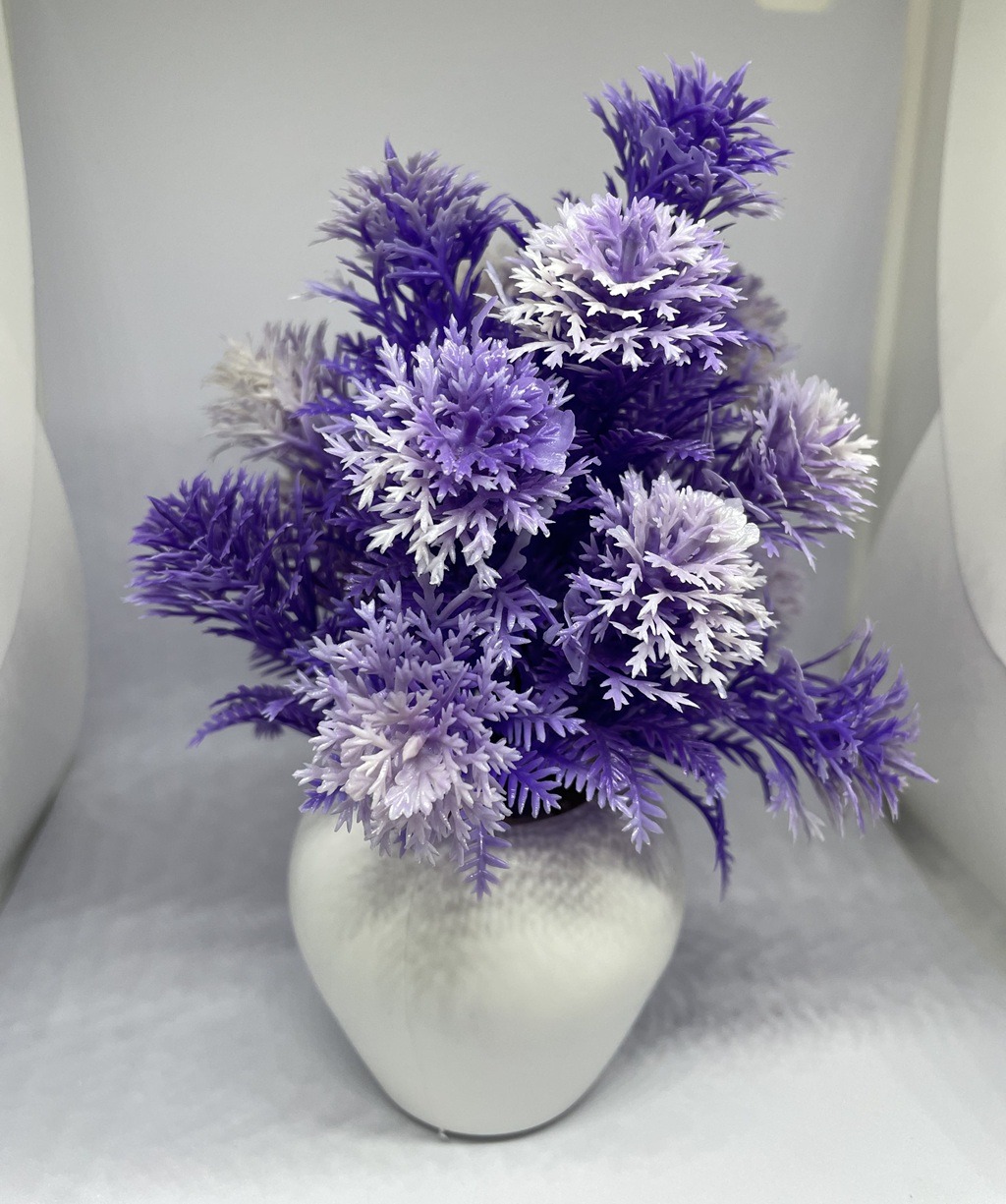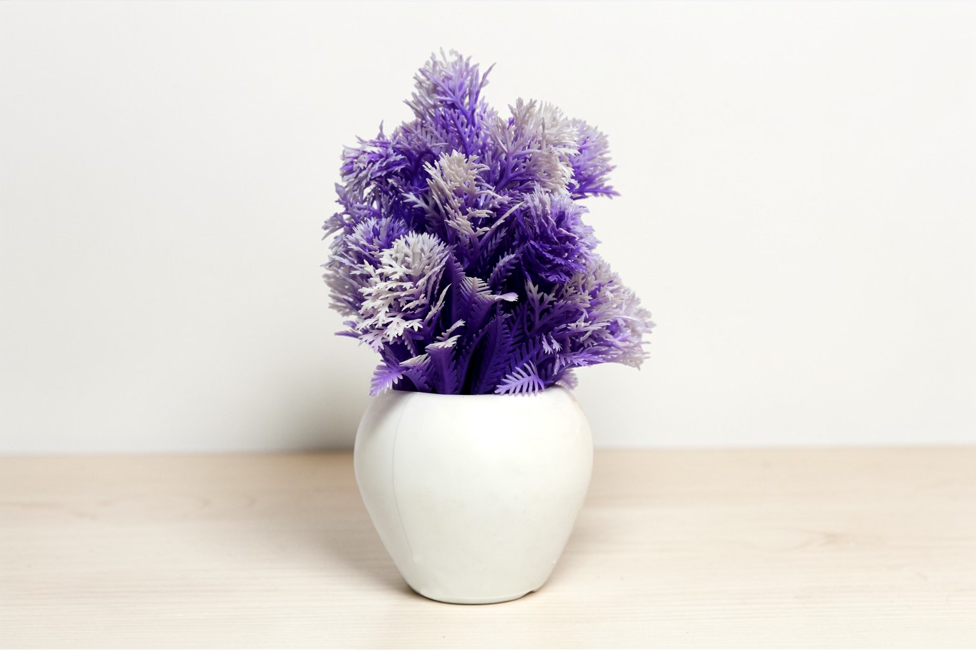 Add a fresh and elegant touch to your space with this beautiful artificial wild bonsai plant in a soft white-purple shade. Designed to look natural and eye-catching, it comes in a stylish apple-shaped white pot that enhances its overall look. Perfect for decorating your drawing room, study table, office desk, or reception area, this plant brings charm without any maintenance. With no need for watering or sunlight, it stays bright and beautiful all year round—making it a great choice for both personal use and gifting.